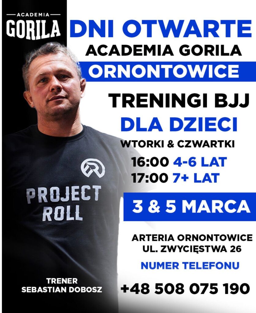 Już 3 i 5 marca masz wyjątkową okazję wziąć udział w zajęciach otwartych z Gorillą – MMA i Jiu-Jitsu. To doskonała szansa, aby na własne oczy zobaczyć, „z czym to się je”, jak wyglądają treningi oraz przekonać się, że sporty walki są dla każdego – zarówno dla dzieci, jak i dorosłych.