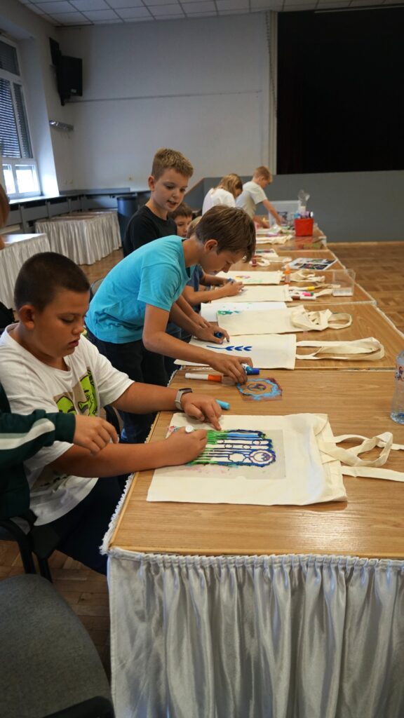 Najwięcej radości przyniosła część praktyczna – warsztaty zdobienia materiałowych toreb. Każde dziecko mogło stworzyć własny projekt inspirowany śląskim haftem. Powstały prawdziwe małe dzieła sztuki – kolorowe, unikatowe i pełne charakteru. 🎨👜