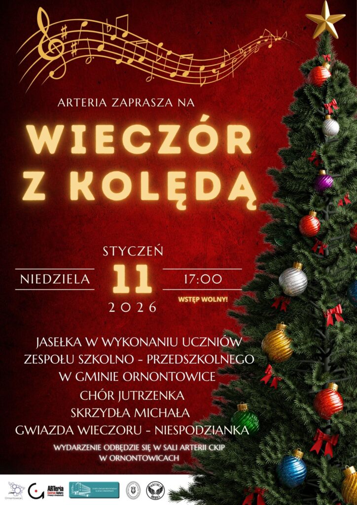 Serdecznie zapraszamy na Wieczór z kolędą, który odbędzie się 11 stycznia 2026 roku o godz. 17.00 w sali ARTerii Centrum Kultury i Promocji w Ornontowicach. Wstęp wolny.