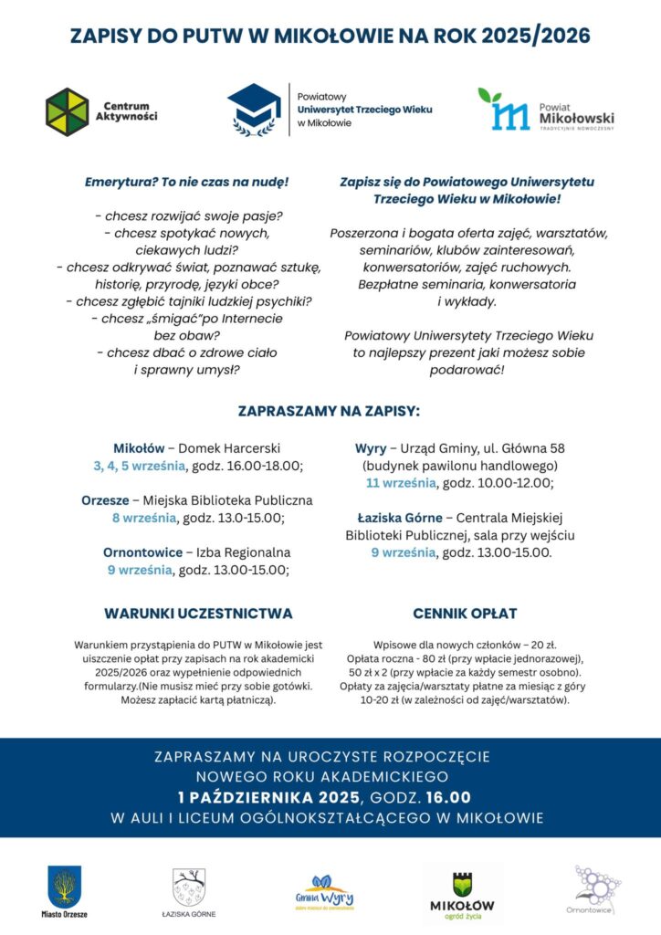 Uniwersytet Trzeciego Wieku serdecznie zaprasza wszystkich zainteresowanych do udziału w zajęciach i wykładach w nowym roku akademickim!